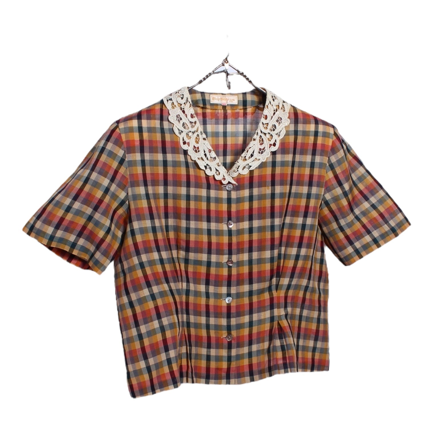 80s Burberry lacey button up blouse small